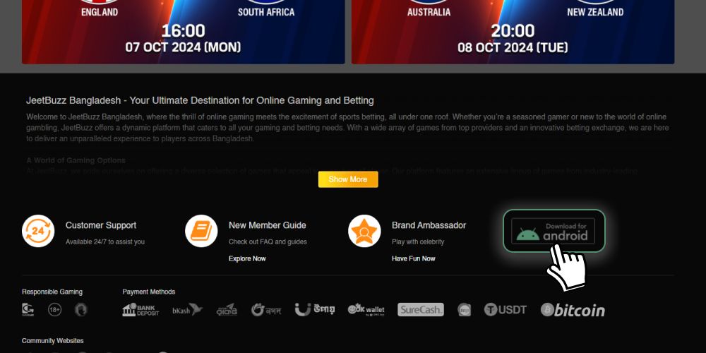 The mobile application is designed specifically to allow users to spend time in JeetBuzz anywhere and anytime with comfort. Firstly, thanks to the wide range of features, without the limitations of a browser, the app offers additional features such as push notifications, biometric login, adaptive interface. Secondly, the app runs much faster and smoother and provides a more comfortable experience for users. Third, the app has additional layers of security and protection. The site in turn does not need to be downloaded and it is available from all browsers, which allows you to quickly access our platform from a new device. In other respects, the app is more attractive to users.