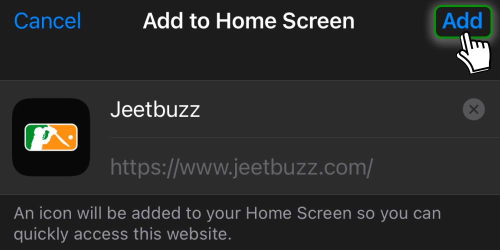 From the menu that appears, select the “Add to Home Screen” option to create a shortcut for quick access to JeetBuzz app.